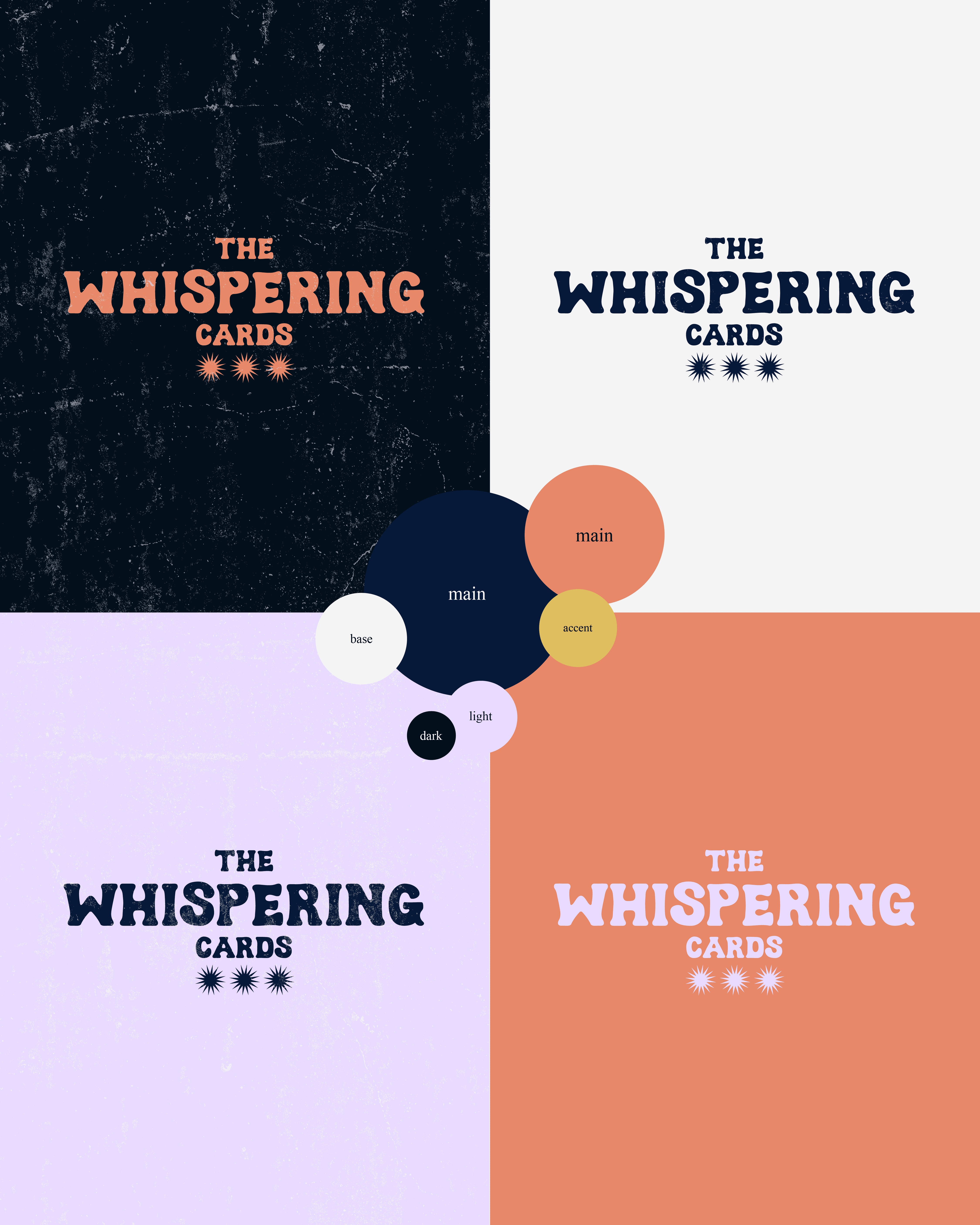 The Whispering Cards is a mystical and intuitive brand designed for a tarot consultant offering personalized readings and spiritual guidance.