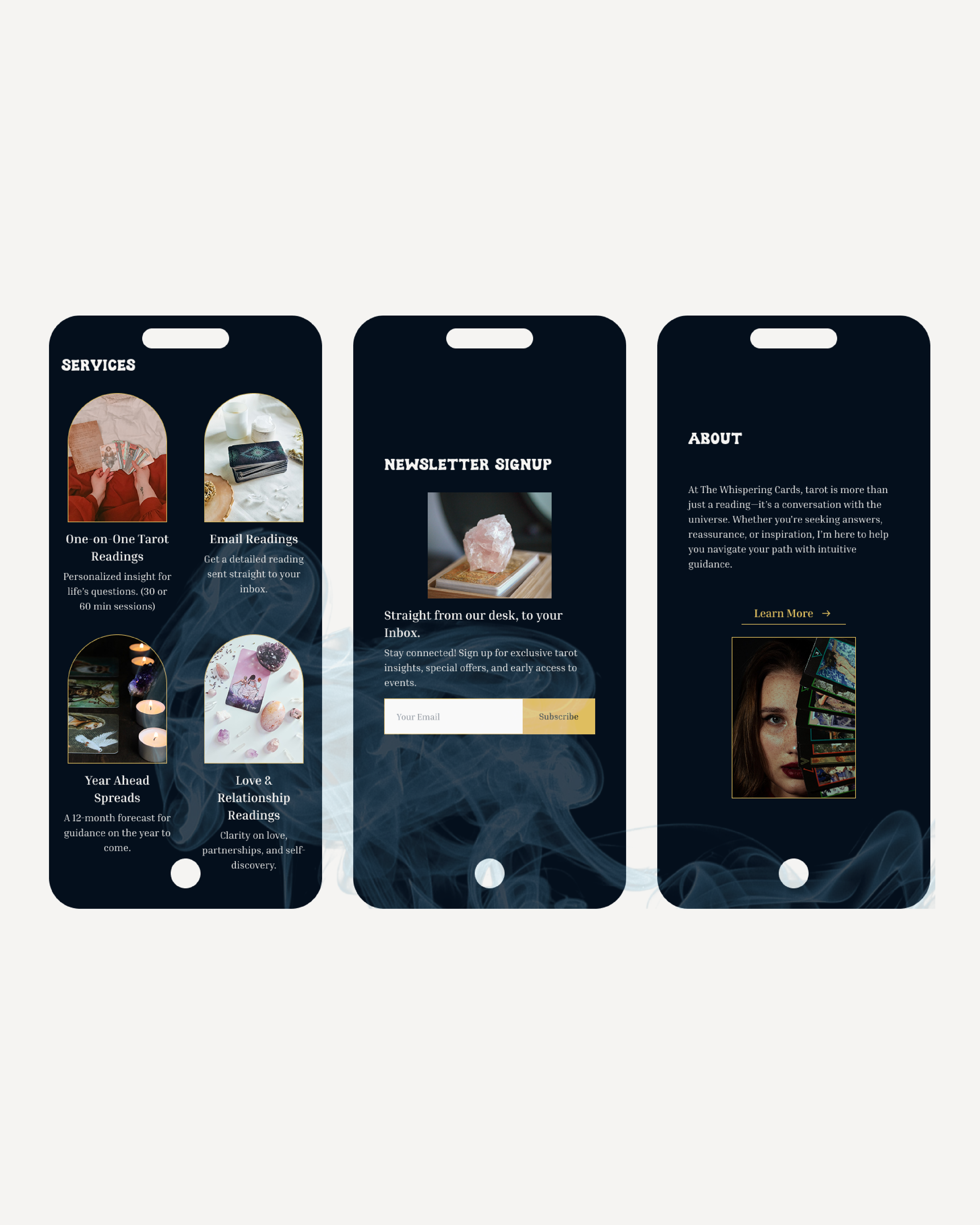 Project Goal: This project involved creating a cohesive brand identity and user-friendly website that reflects the essence of tarot—mystery, wisdom, and insight.